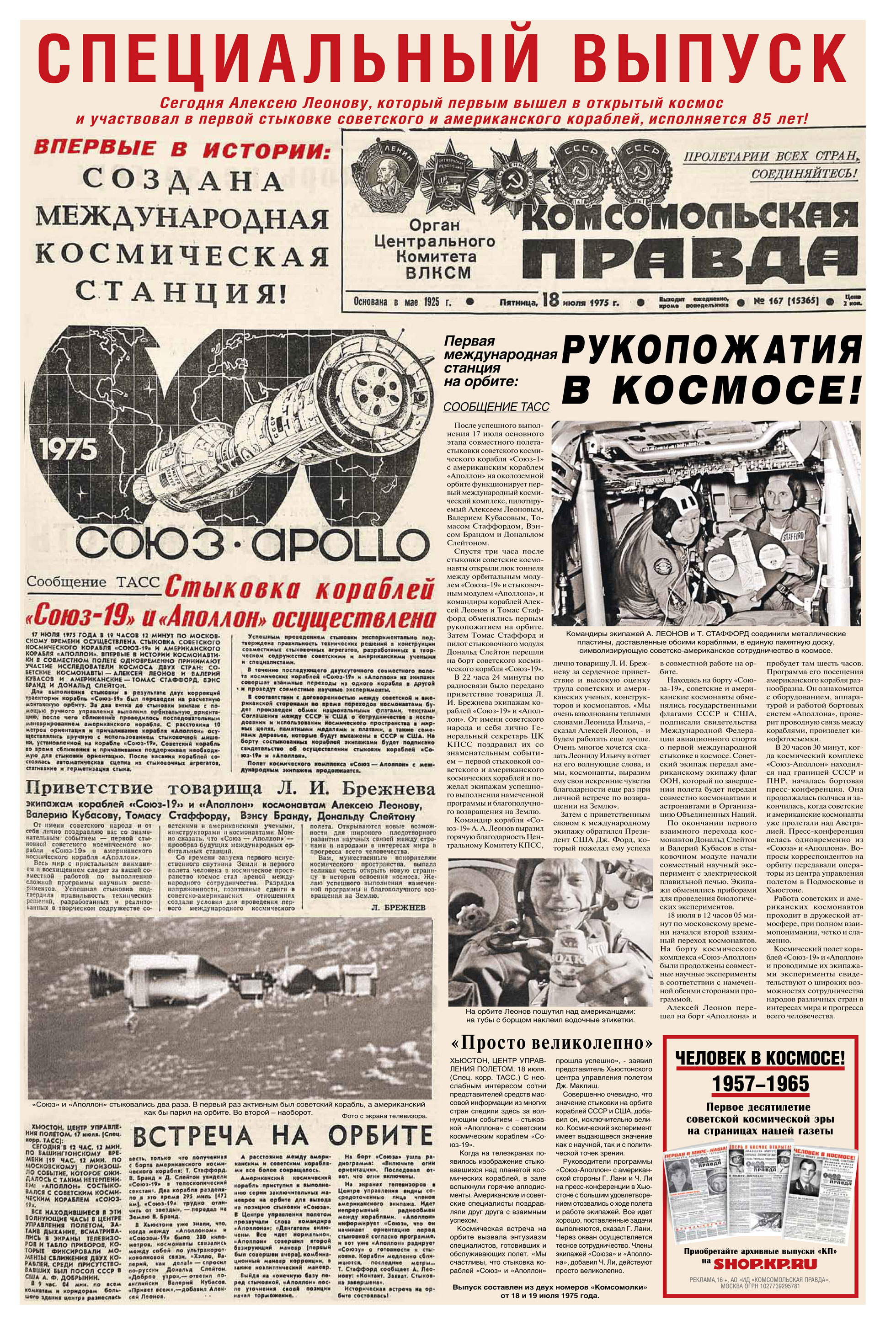 Выпуск "Комсомольской правды" про знаменитый экспериментальный полет «Союз-Аполлон» от 1975 года