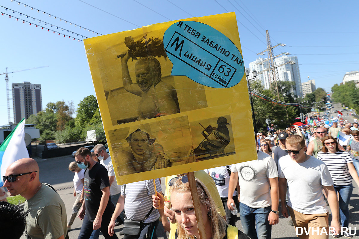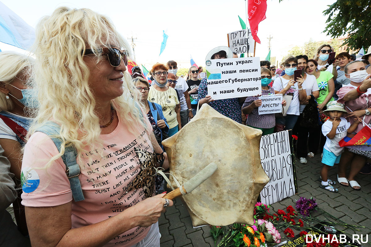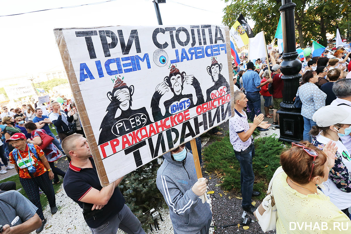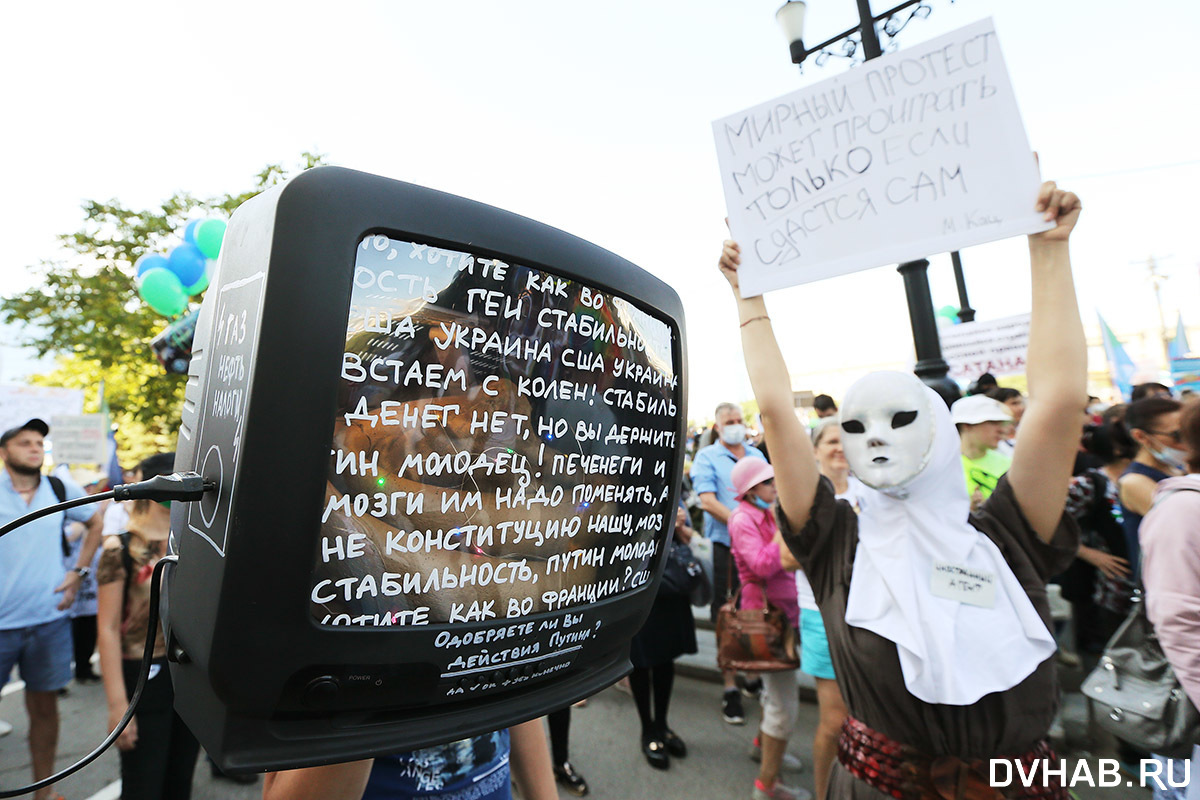 Почти два месяца ежедневно в Хабаровске проходят митинги и шествия. Но представители власти на них не реагируют. Поэтому по субботам перед "Белым домом" собираются тысячи активистов. Почти у каждого из них плакаты и транспаранты, есть также и те, кто подходят к этому делу с креативом. С каждой неделей люди все больше смелеют, поэтому накануне на площади имени Ленина состоялись похороны.