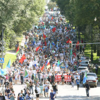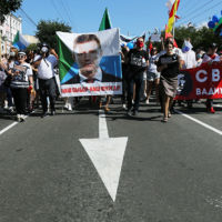 Обычно по субботам шествие возглавляет "фургаломобиль". Но его водители были задержаны и арестованы. Но митингующие нашли выход – они принесли свой миниатюрный аналог "фургаломобиля", который прошел весь "протестный круг".