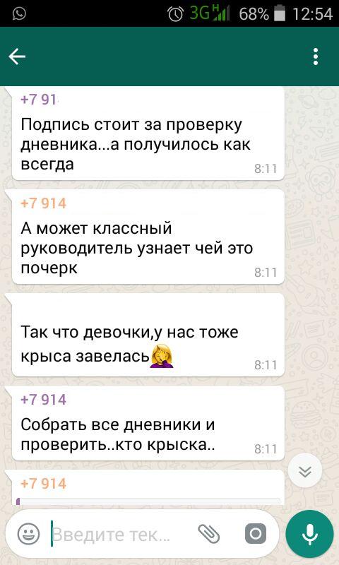 Есть и «родители», у которых ответ лишь «а чЁ такоВо?.. Найти надо „крысу“, что фото сделала с дневника» и т.д.…