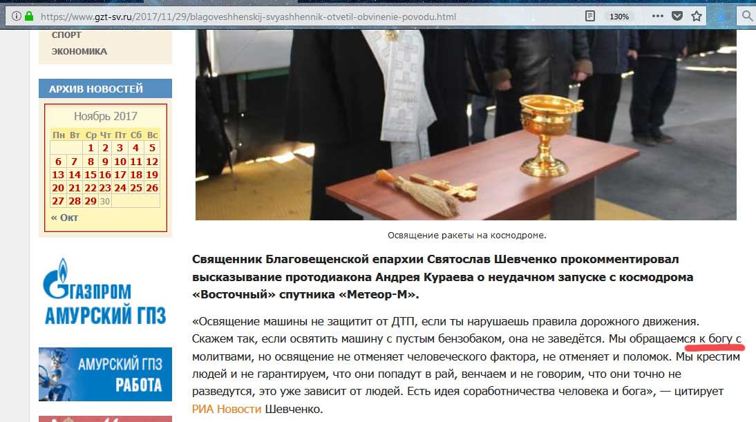 Оставлю на суд читателей оценку данного высказывания, но от себя добавлю вырезку из газеты "Зейские огни". У нас, конечно, свобода совести и каждый человек может быть неверующим, но "Бог" надо писать с большой буквы.