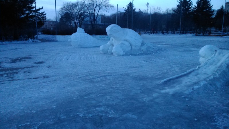 Эти кучи снега, фонари полусветящие (полупотухшие, кому как удобней), горки для экстремальных мероприятий.