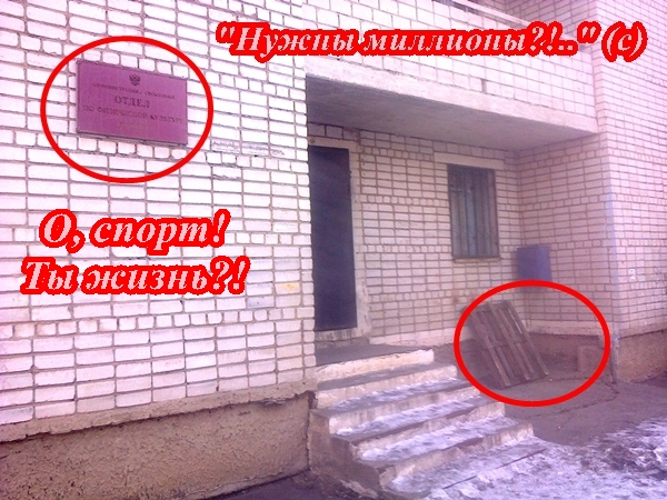 Браво, классно, вы ткнули носом нашу несостоятельную администрацию!!! Есть такая болезнь — административная импотенция… Доктор А.Козлов недавно сделал попытку лечения — воткнул пару укольчиков администрации… Впрочем, вряд ли поможет, кажется «административная импотенция» — это уже неизлечимая болезнь у нашей администрации )))
