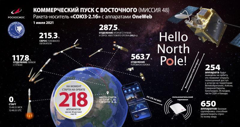 запуск спутников OneWeb с Восточного 1 июля;