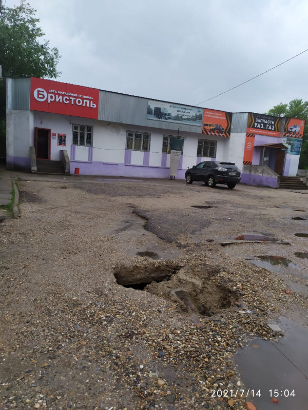 Магазин совсем не подготовил стоянку для своих нужд. От слова - НИКАК... Огромные и поменьше фуры почти ежедневно разгружают товар и осуществляют промежуточные перевозки. Немалый поток машин посетителей тоже сказывается. Заезд на стоянку с дороги быстро пришёл в негодность.