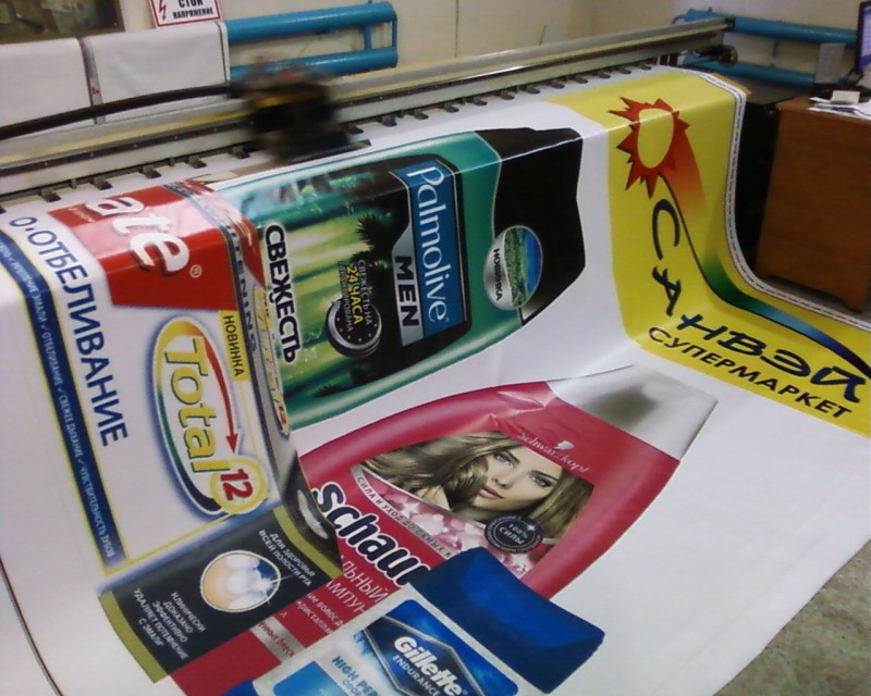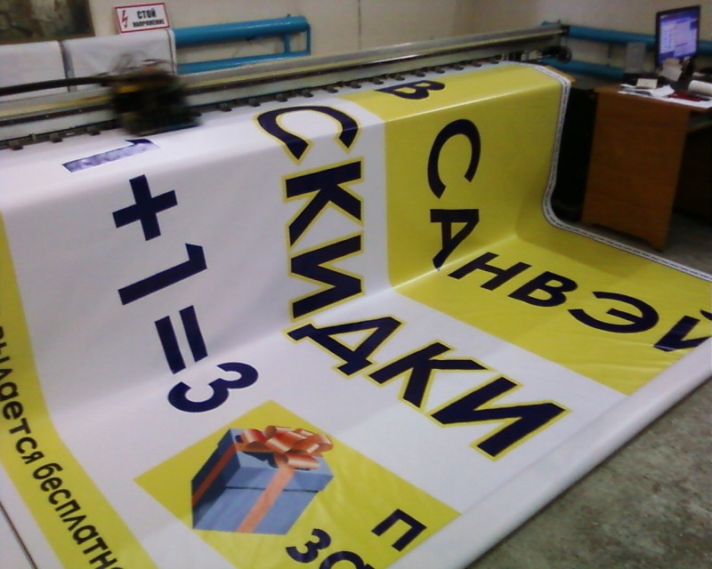 Широкоформатная печать (large format printing). Стоимость печати 1 кв. м. - от 200 рублей (в зависимости от площади печати).