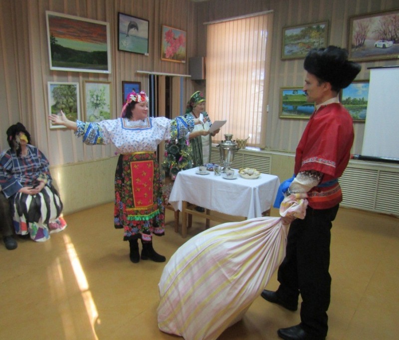 Вторая часть заседания была посвящена отшумевшим зимним праздникам. По сценарию Анны Басенко, литераторы приняли активное участие в театрализованном представлении с