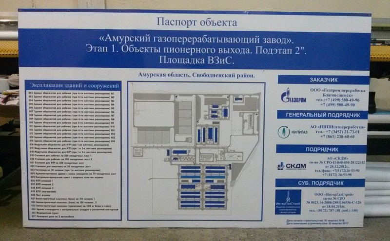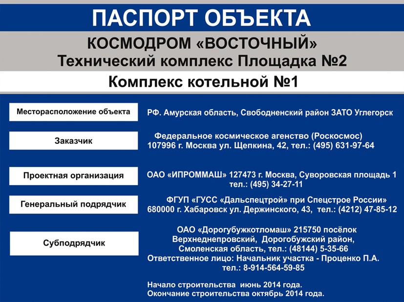 Рядом с центральным въездом на строительную площадку согласно нормативным документам устанавливается отдельно стоящий информационный щит «Паспорт объекта».