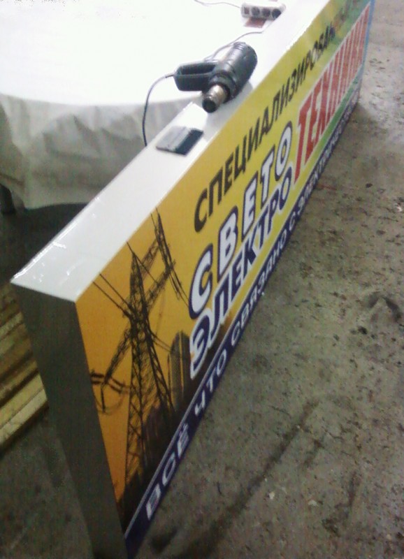 - изготовление основания и лицевой (прозрачной) части световой плоской вывески;